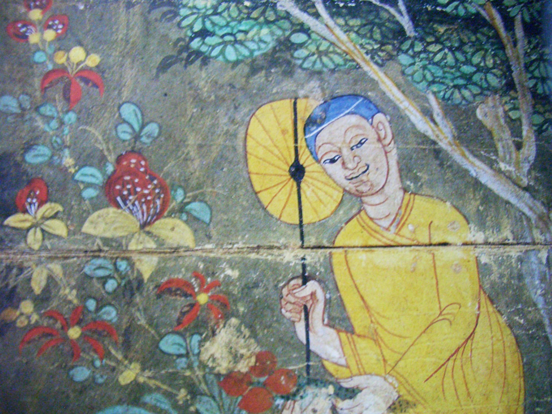 The secondary fans are talipot fans used by Buddhist monks when performing religious rites. The fans in the past were made of palm leaves cut into a circle, but later cloth replaced the leaves. During the reign of King Rama V, the art of making the fans was so popular that competition among the fan makers was intense, resulting in more and more intricate designs. The trend declined during the reign of Rama VII, as the fans had become expensive.